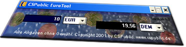 Der Euro ist da! Und damit Sie nicht durcheinander kommen, übernimmt dieses Tool die Umrechnung. Einfach die Währungen einstellen und die Zahl eintippen. Der Rest funktioniert automatisch.